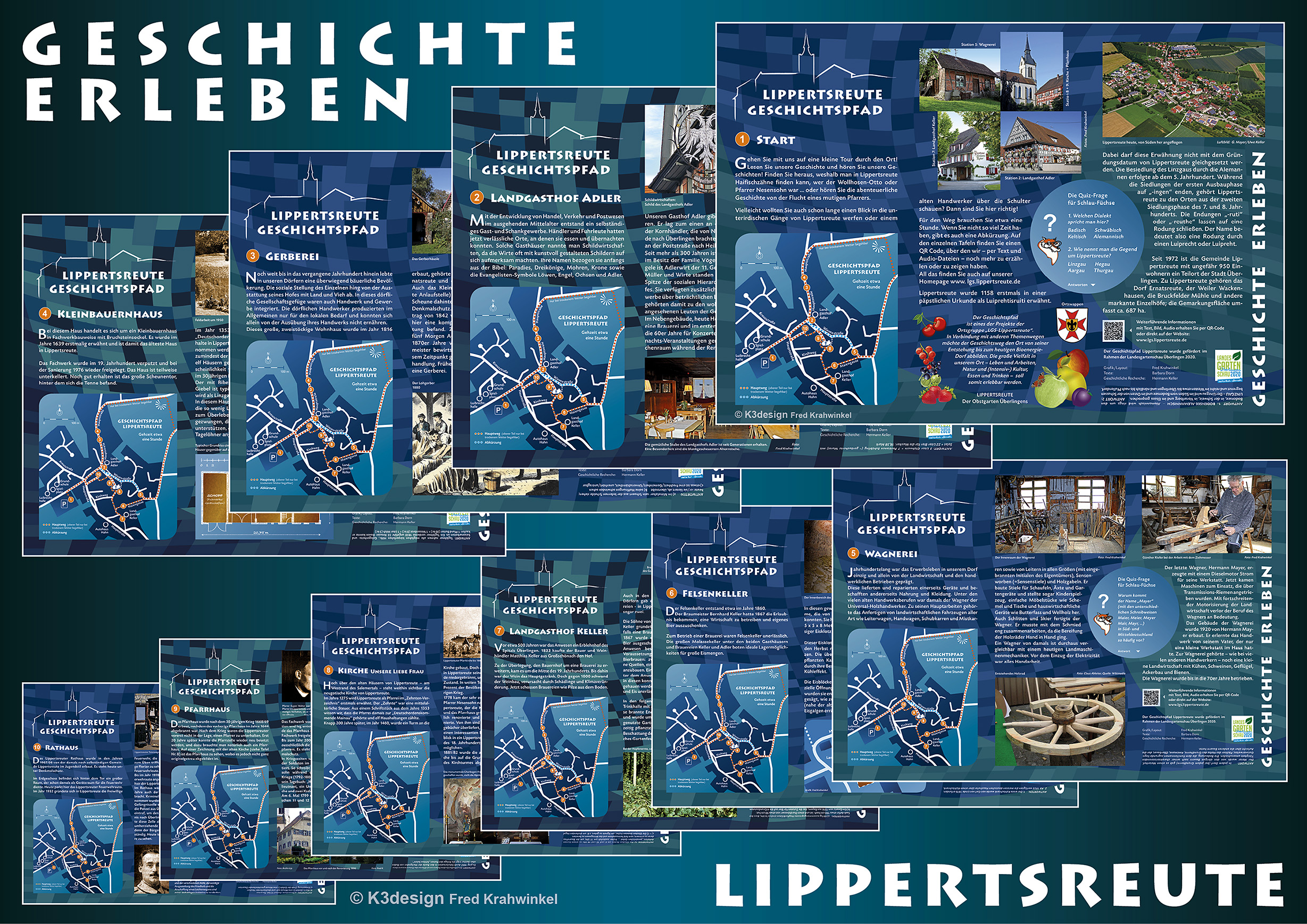 Die Tafeln, der Flyer, die Gesamt-Karte des Geschichtspfads